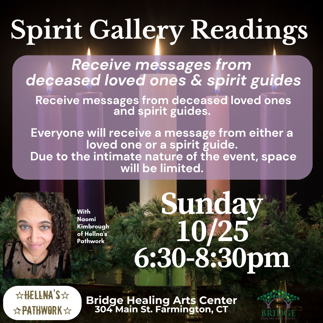 Spirit Gallery Readings Saturday 10/25/2025 - 6:30-8:30pm Come enjoy spirit [...]